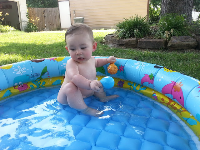 Eating. Well. The good news is, you are a fabulous eater. You have eaten everything we've ever given you, except pineapples. Those we have tried a couple of times and still gets a pretty big grimace. You have started eating some table food, although we have to watch you because you sometimes "chipmunk" the food and hide it in your cheeks. On baby food, we have moved to step 3 which adds more texture. Picking up food is no problem, but you never try to feed yourself. We need to work on that girlfriend!