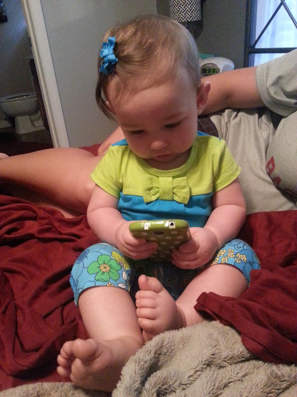 Saying Daddy (daaEEE), Bye bye (sounds like daaaa daa but she only really says it when she's waving), Uh Oh and lots of gibberish.